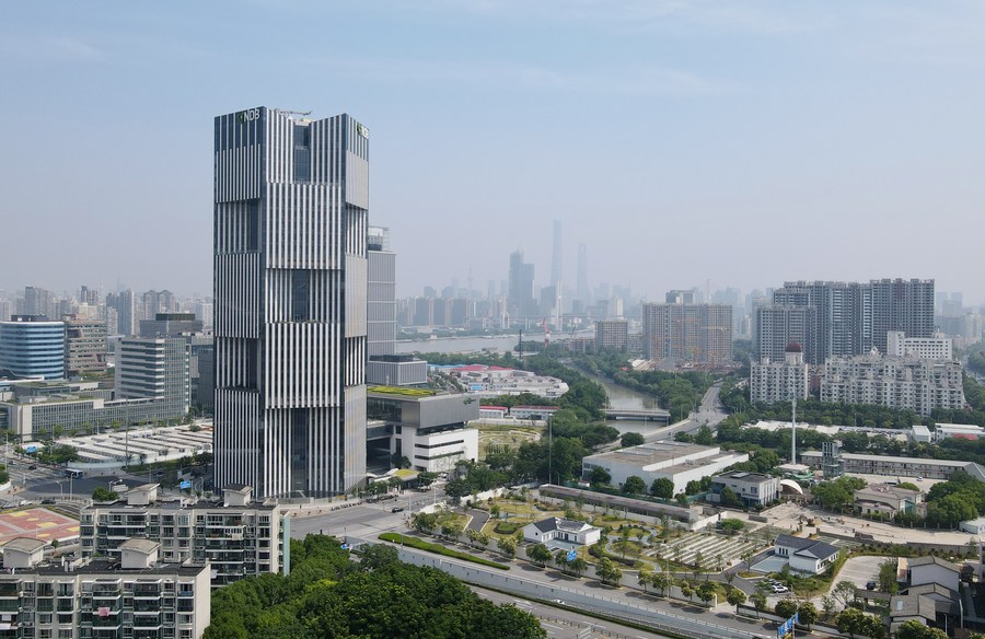 Photo aérienne prise le 17 juin 2022 du siège de la Nouvelle Banque de développement, également connue comme la banque des BRICS, à Shanghai, dans l'est de la Chine. (Xinhua/Fang Zhe)