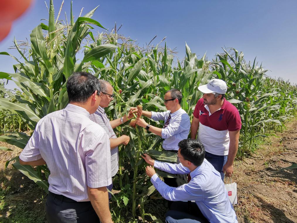 Des membres de l'équipe de formation de l'Université du Guizhou effectuant le 25 juin 2019, un stage d'enseignement dans une ferme de l'Université d'Alexandrie, en Egypte. Stage au cours duquel ils étudient les maladies et les ravageurs de maïs dans les champs. (Photo fournie par l'Université du Guizhou)