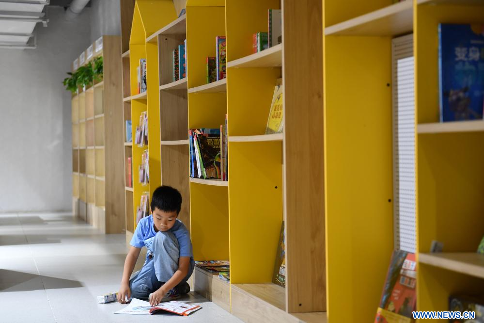 BEIJING, 3 octobre (Xinhua) -- Un enfant lit dans une librairie à Changsha, dans la province chinoise du Hunan (centre), le 2 octobre 2023. Les habitants de tout le pays participent à des activités culturelles pendant les congés de la Fête nationale. (Photo : Chen Zhenhai)
