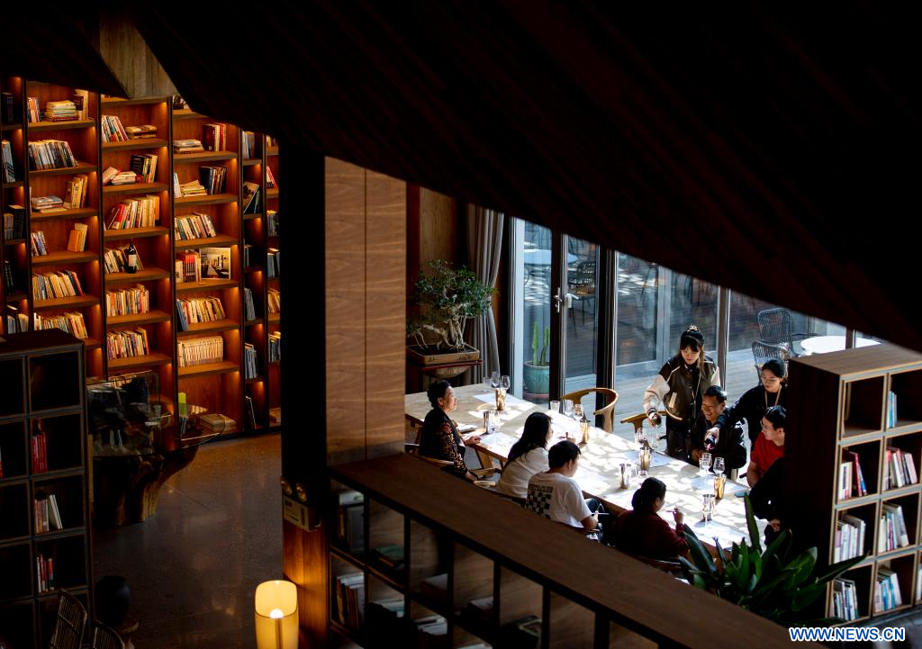 BEIJING, 3 octobre (Xinhua) -- Des personnes dégustent du vin dans un château à Qingtongxia, dans la région autonome Hui du Ningxia (nord-ouest de la Chine), le 2 octobre 2023. Les habitants de tout le pays participent à des activités culturelles pendant les congés de la Fête nationale. (Photo : Yang Zhisen)