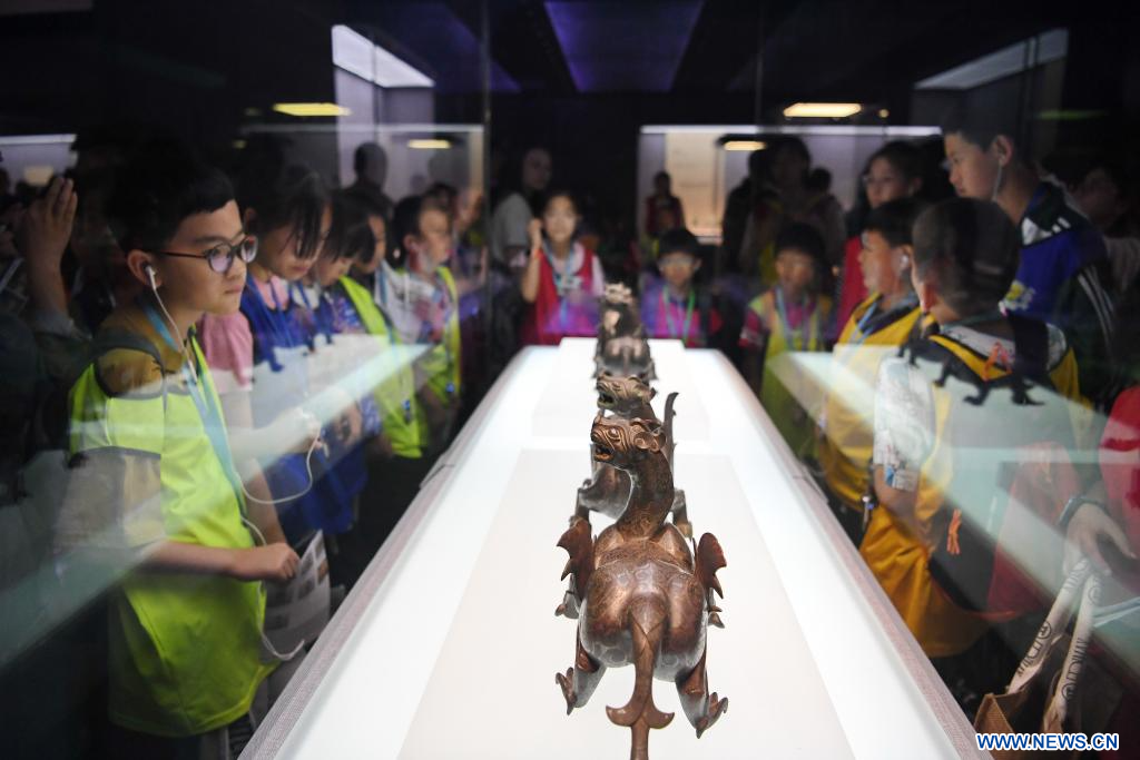 BEIJING, 3 octobre (Xinhua) -- Des élèves visitent le Musée du Hebei à Shijiazhuang, dans la province chinoise du Hebei (nord), le 2 octobre 2023. Les habitants de tout le pays participent à des activités culturelles pendant les congés de la Fête nationale. (Photo : Mu Yu)