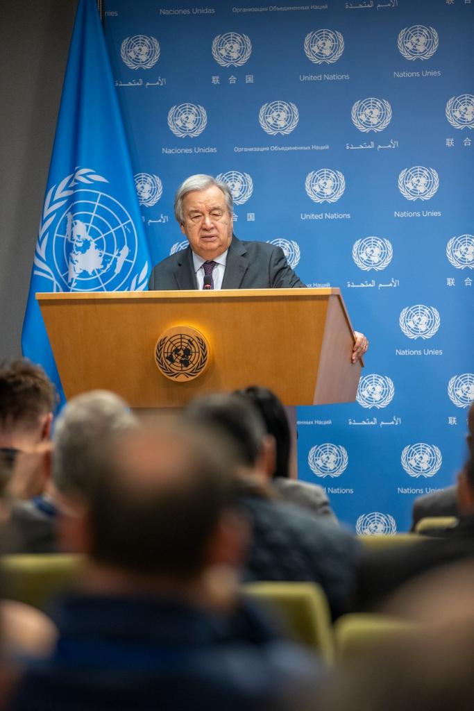 Le secrétaire général Antonio Guterres prend la parole lors d'un point de presse au siège des Nations Unies à New York, le 9 octobre 2023. (Paulo Filgueiras/UN Photo/via Xinhua)