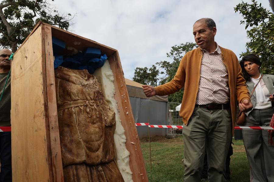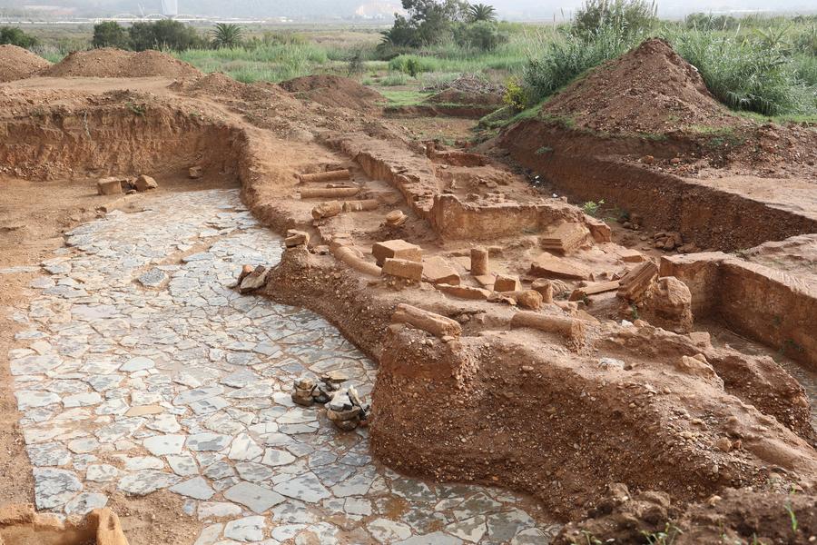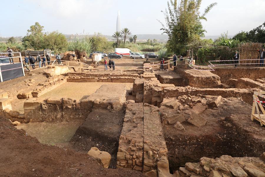 RABAT, 4 novembre (Xinhua) -- L'archéologue marocain Abdelaziz El Khayari présente une statue de marbre découverte sur le site d'une ville antique de l'époque romaine à Rabat, au Maroc, le 3 novembre 2023. Des archéologues marocains ont annoncé vendredi qu'ils avaient découvert ce site dans la capitale marocaine, Rabat, datant du IIe siècle. (Xinhua/Huo Jing)Photo prise le 3 novembre 2023 montrant une zone portuaire sur le site d'une ville antique de l'ère romaine récemment mis au jour à Rabat, au Maroc. Des archéologues marocains ont annoncé vendredi qu'ils avaient découvert ce site dans la capitale marocaine, Rabat, datant du IIe siècle. (Xinhua/Huo Jing)Photo prise le 3 novembre 2023 montrant une zone de bains publics sur le site d'une ville antique de l'ère romaine récemment mis au jour à Rabat, au Maroc. Des archéologues marocains ont annoncé vendredi qu'ils avaient découvert ce site dans la capitale marocaine, Rabat, datant du IIe siècle. (Xinhua/Huo Jing)