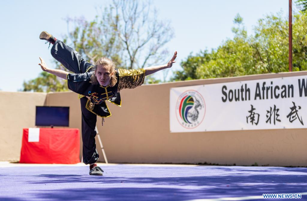 JOHANNESBURG, 11 novembre (Xinhua) -- Rhyse Sothern participe au championnat de Wushu 2023 organisé par la Fédération de Wushu d'Afrique du Sud, à Johannesburg, le 11 novembre 2023. (Xinhua/Zhang Yudong)