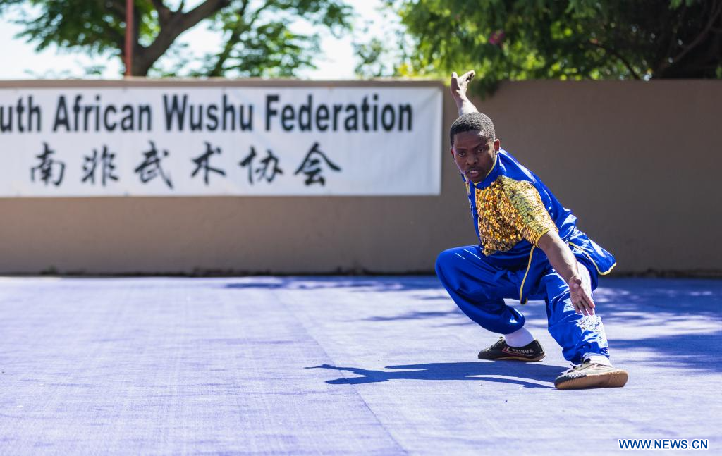 JOHANNESBURG, 11 novembre (Xinhua) -- Maile Monyama participe au championnat de Wushu 2023 organisé par la Fédération de Wushu d'Afrique du Sud, à Johannesburg, le 11 novembre 2023. (Xinhua/Zhang Yudong)