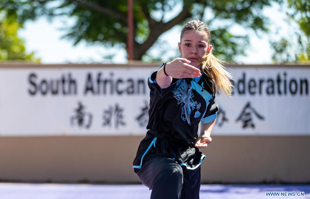 JOHANNESBURG, 11 novembre (Xinhua) -- Kitana Van Der Mescht participe au championnat de Wushu 2023 organisé par la Fédération de Wushu d'Afrique du Sud, à Johannesburg, le 11 novembre 2023. (Xinhua/Zhang Yudong)