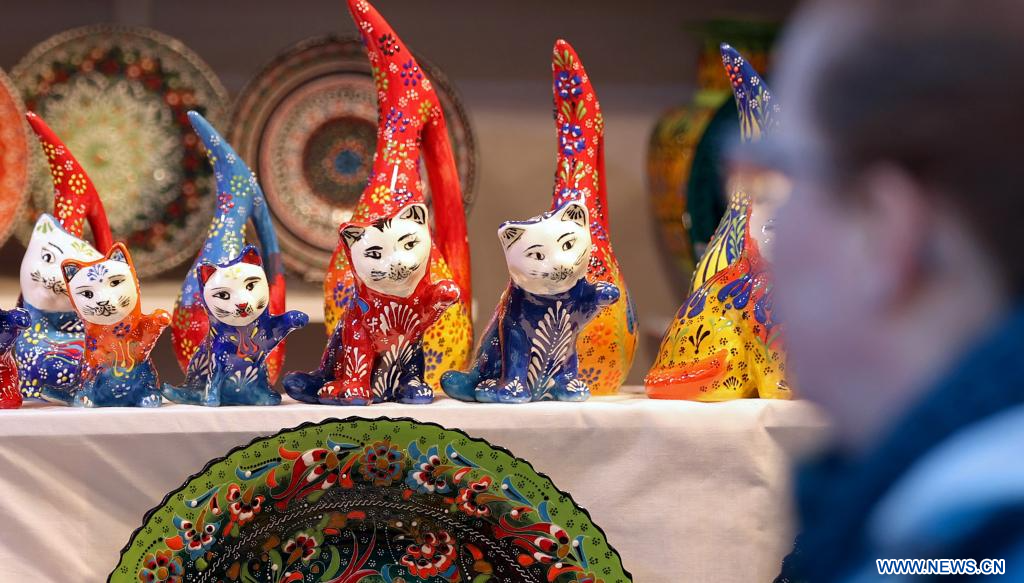 LONDRES, 3 décembre (Xinhua) -- Des souvenirs sur le marché de Noël de Trafalgar Square à Londres, au Royaume-Uni, le 2 décembre 2023. (Xinhua/Li Ying)