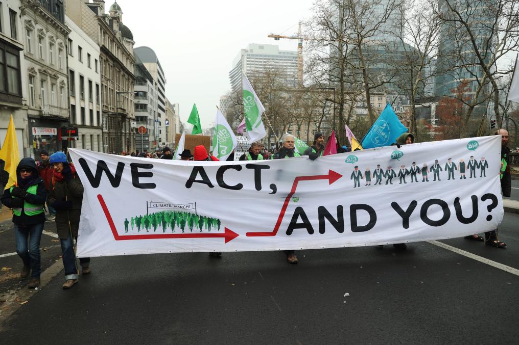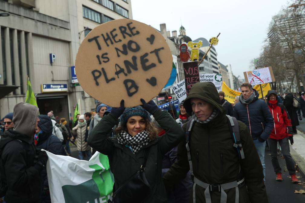 BRUXELLES, 4 décembre (Xinhua) -- Des personnes participent à une marche dans l'optique de rappeler le monde à la nécessité de prendre des mesures contre le changement climatique à Bruxelles, en Belgique, le 3 décembre 2023. (Xinhua/Zhao Dingzhe)