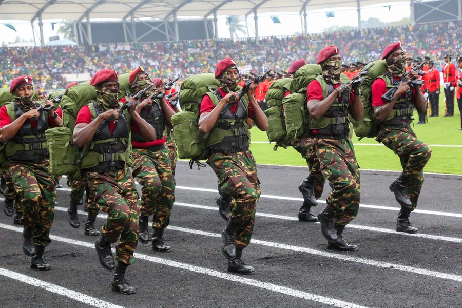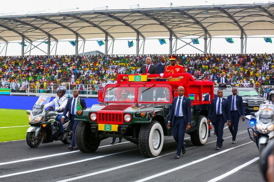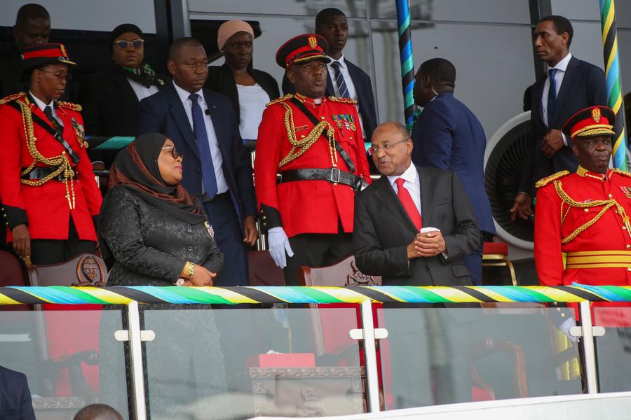 ZANZIBAR (Tanzanie), 13 janvier (Xinhua) -- Le président de Zanzibar de la Tanzanie Hussein Ali Mwinyi (deuxième à droite, au front) et la présidente tanzanienne Samia Suluhu Hassan assistent aux célébrations du 60e anniversaire de la révolution de Zanzibar à Zanzibar, en Tanzanie, le 12 janvier 2024. Les Zanzibariens se sont rassemblés vendredi au New Amani Complex pour célébrer l'anniversaire de la révolution, qui a eu lieu le 12 janvier 1964, conduisant au renversement du sultan de Zanzibar et de son gouvernement . (Xinhua/Herman Emmanuel)Des soldats tanzaniens défilent lors des célébrations du 60e anniversaire de la révolution de Zanzibar à Zanzibar, en Tanzanie, le 12 janvier 2024.Le président de Zanzibar de la Tanzanie Hussein Ali Mwinyi (debout à gauche sur le véhicule), assiste aux célébrations du 60e anniversaire de la révolution de Zanzibar à Zanzibar, en Tanzanie, le 12 janvier 2024.■