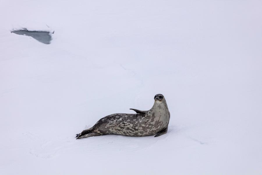 Photo d'un phoque en mer d'Amundsen, le 12 janvier 2024. (Photo : Li Jingshi)