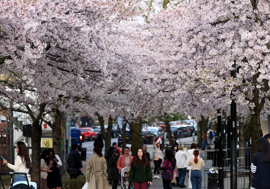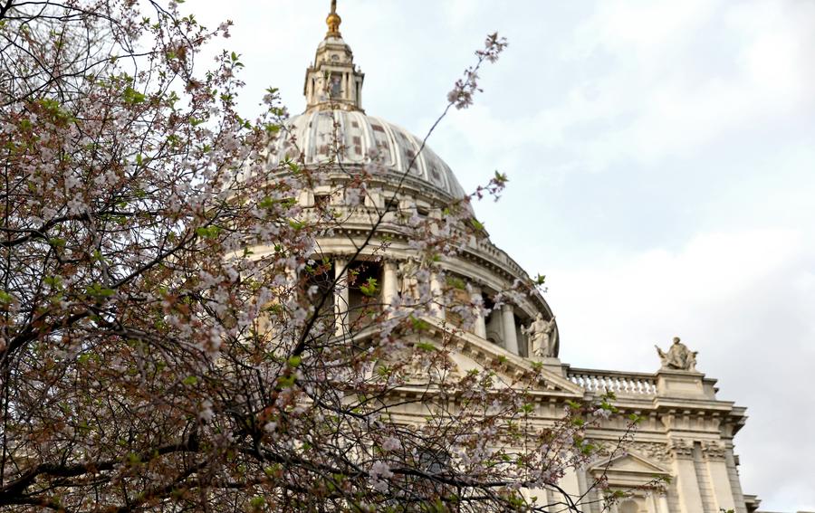 LONDRES, 21 mars (Xinhua) -- Des gens se tiennent sous un cerisier en fleurs à Londres, au Royaume-Uni, le 20 mars 2024. (Xinhua/Li Ying)Des cerisiers en fleurs près de la cathédrale Saint-Paul à Londres, au Royaume-Uni, le 20 mars 2024. (Xinhua/Li Ying)Des gens marchent sous des cerisiers en fleurs à Londres, au Royaume-Uni, le 20 mars 2024. (Xinhua/Li Ying)