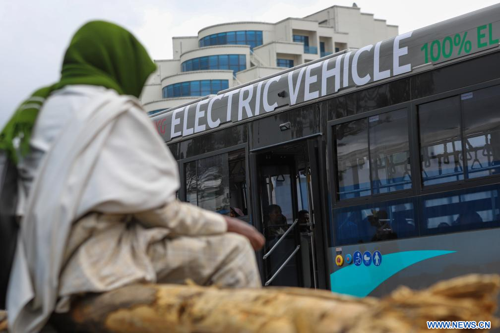 ADDIS-ABEBA, 30 mars (Xinhua) -- Naol Abera a été parmi les premiers passagers à monter à bord d'un bus électrique lors d'un récent voyage entre la zone de l'aéroport de Bole et Shiro Meda à Addis-Abeba, la capitale éthiopienne.