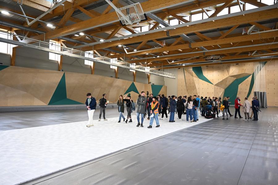 Des personnes visitent le site d'entraînement pour les épreuves d'escalade au Bourget, près de Paris en France, le 30 mai 2024. (Xinhua/Julien Mattia)