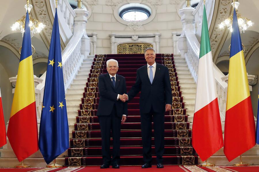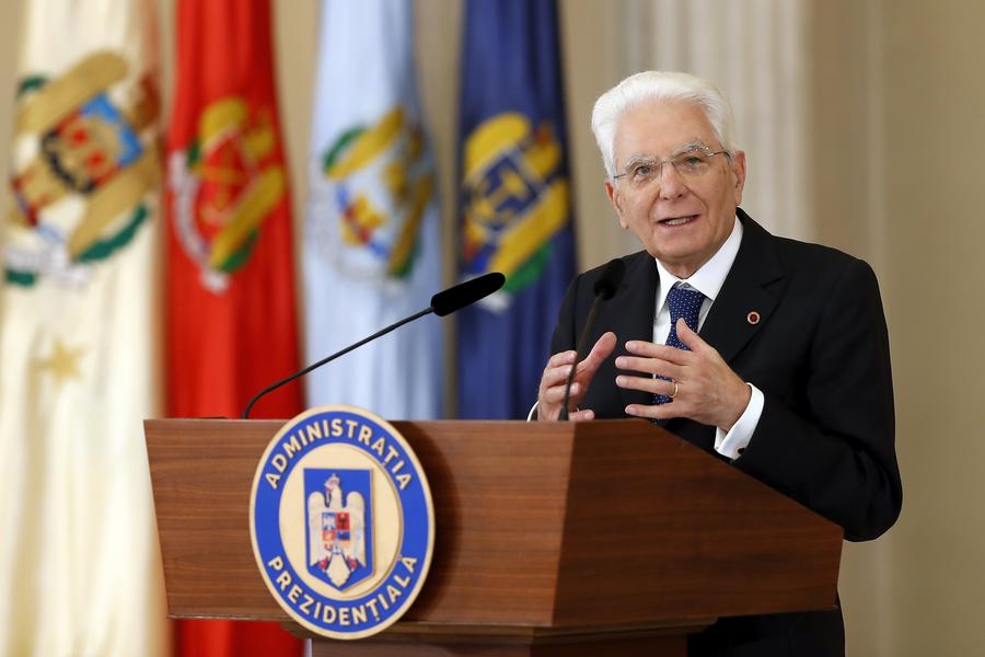 BUCAREST, 21 juin (Xinhua) -- Le président italien Sergio Mattarella donne une conférence de presse avec le président roumain Klaus Iohannis (non présent sur la photo) à Bucarest, en Roumanie, le 19 juin 2024. M. Mattarella est en visite officielle en Roumanie. (Cristian Cristel/Xinhua)