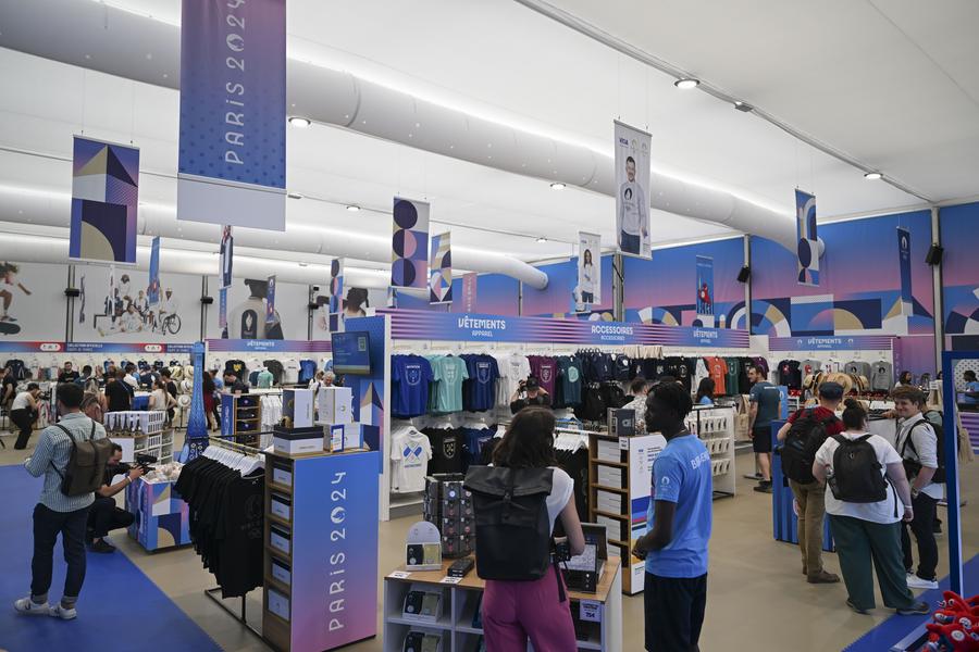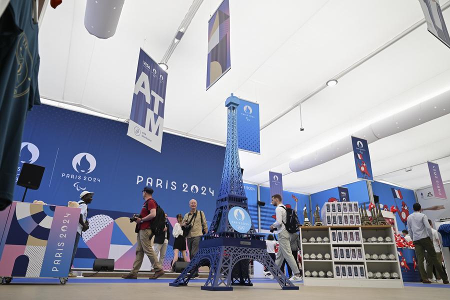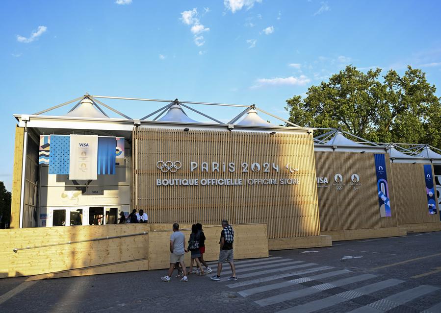 PARIS, 29 juin (Xinhua) -- Photo prise le 28 juin 2024 montrant l'extérieur de la boutique officielle de Paris 2024 sur l'avenue des Champs-Elysées à Paris, en France. (Xinhua/He Changshan)Un souvenir en forme de Tour Eiffel dans la boutique officielle de Paris 2024 sur l'avenue des Champs-Elysées à Paris, en France, le 27 juin 2024. (Xinhua/He Changshan)Photo prise le 27 juin 2024 montrant l'intérieur de la boutique officielle de Paris 2024 sur l'avenue des Champs-Elysées à Paris, en France. (Xinhua/He Changshan)