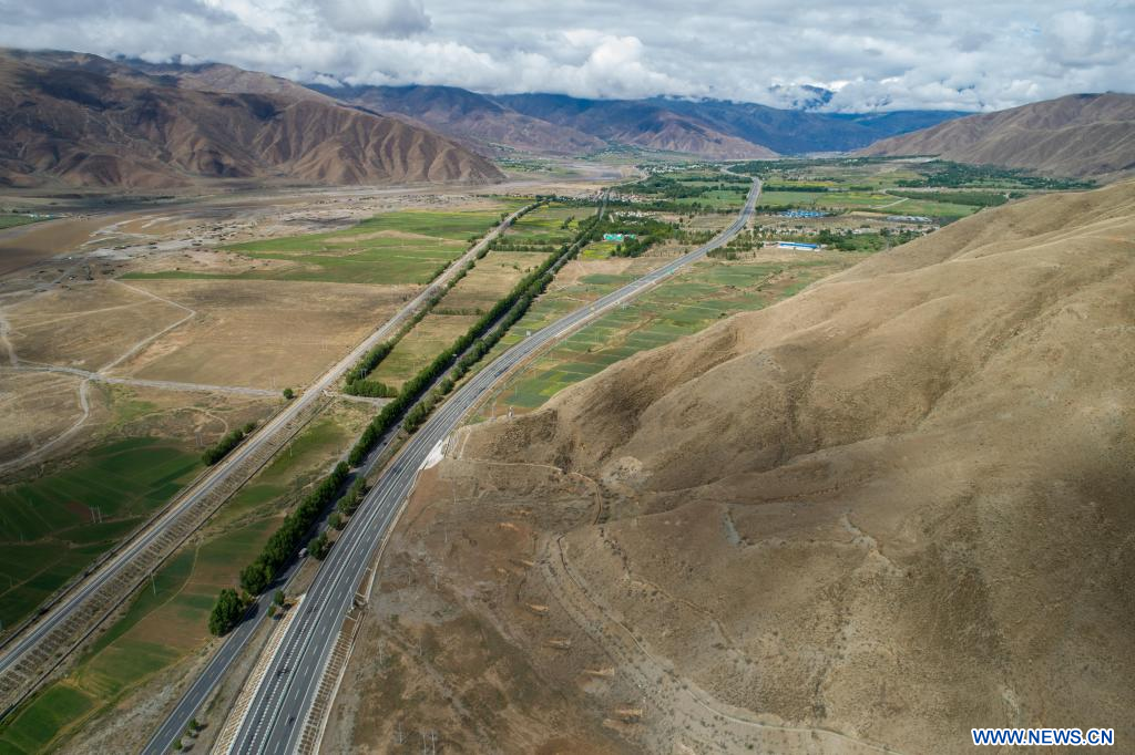 L'autoroute de haut niveau marque un autre développement important dans les transports du Xizang après la mise en service en 2014 de la ligne ferroviaire de 251 km reliant Lhassa à Xigaze.