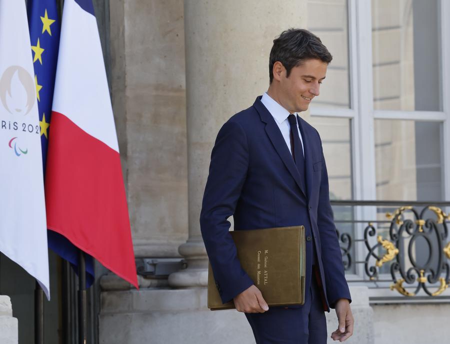 PARIS, 17 juillet (Xinhua) -- Le Premier ministre français Gabriel Attal quitte l'Elysée après la réunion hebdomadaire du conseil des ministres à Paris, en France, le 16 juillet 2024. Le président français Emmanuel Macron a accepté la démission du Premier ministre Gabriel Attal, mais lui a demandé de continuer à rester à la tête du gouvernement par intérim jusqu'à l'établissement d'une nouvelle administration, a annoncé mardi le bureau présidentiel français. (Xinhua/Henri Szwarc)