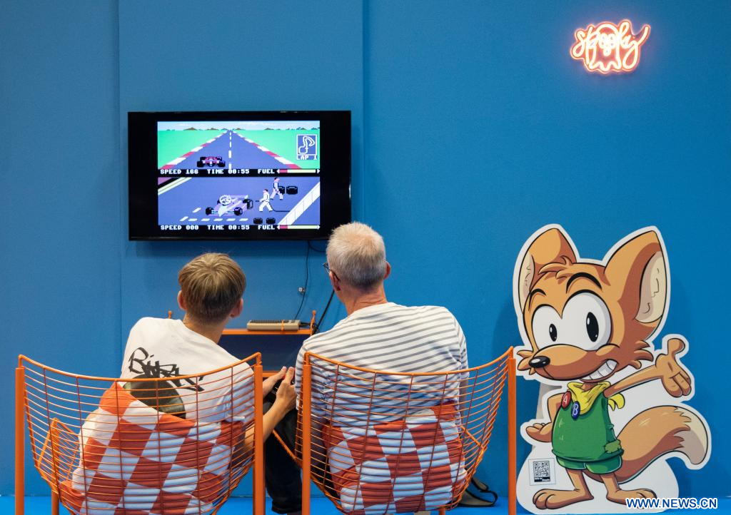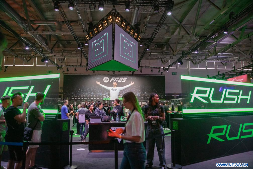 COLOGNE (Allemagne), 22 août (Xinhua) -- Des personnes essaient un jeu vidéo pendant la Gamescom 2024 à Cologne, en Allemagne, le 21 août 2024. La Gamescom 2024 a débuté mercredi, attirant plus de 1.400 exposants de 64 pays et régions. (Xinhua/Zhang Fan)