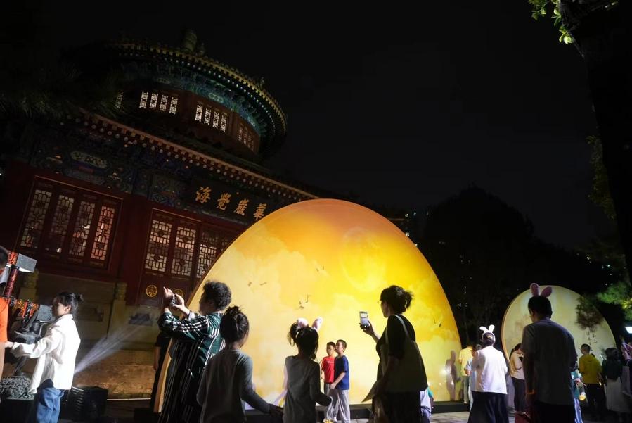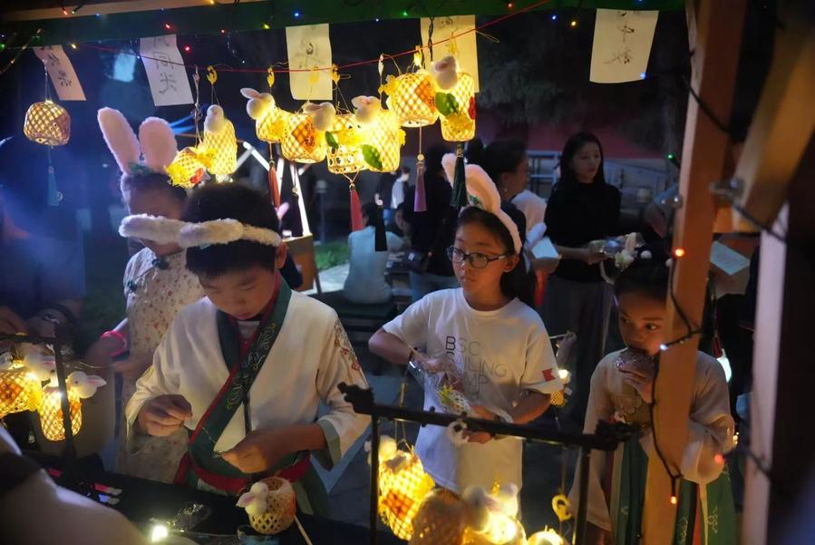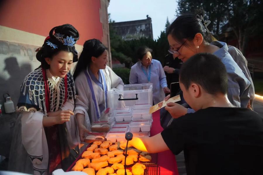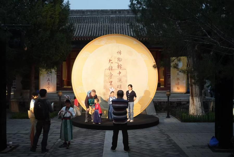 BEIJING, 18 septembre (Xinhua) -- Le temple Dazhong (grosse cloche, en chinois) a organisé le 17 septembre un événement sur le thème de la fête de la mi-automne, invitant les visiteurs à fabriquer des gâteaux de lune, à teindre des éventails en laque et à apprécier la cloche ancienne.