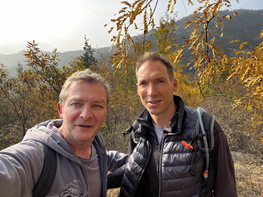Laurent est un lève-tôt et me demande de le retrouver à 7h30. Il est un mélange de discipline et de flexibilité intellectuelle. Il a choisi de me faire découvrir un endroit qu'il aime beaucoup, qui allie son amour de la randonnée et de la culture. Nous montons dans sa voiture et direction le temple de Dajue. C'est à une heure de route, c'est une des nombreuses montagnes autour de Beijing et celle-ci comprend trois sommets.