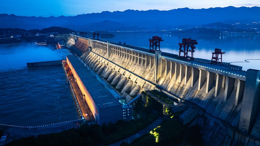Vue nocturne du projet des Trois Gorges dans la province chinoise du Hubei (centre), le 20 juillet 2024.(Photo : Xiao Yijiu)