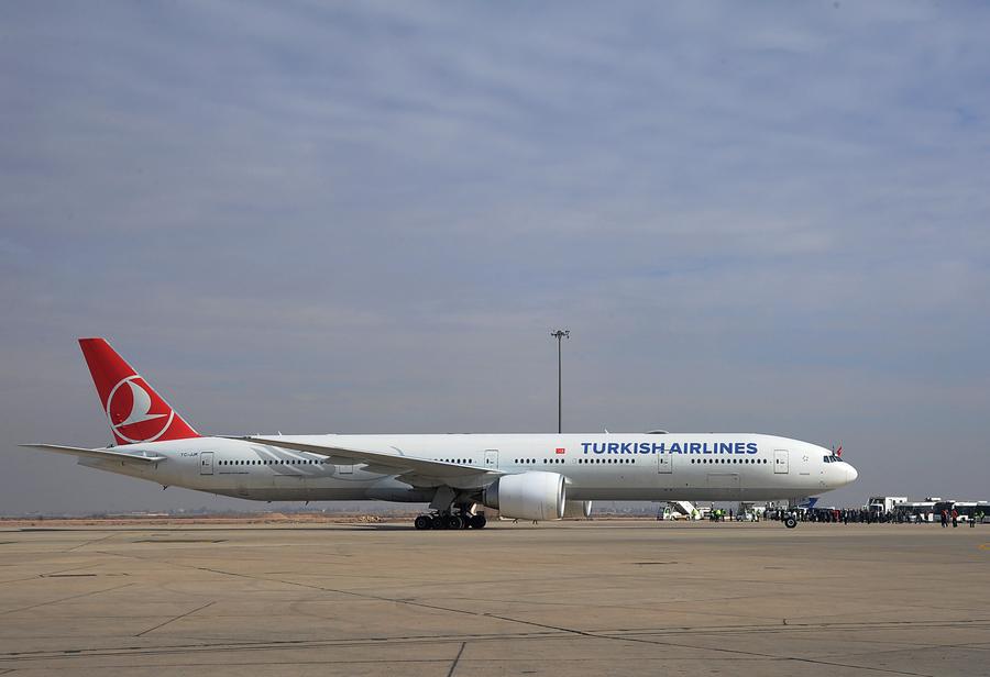 DAMAS, 23 janvier (Xinhua) -- Un avion de ligne turc atterrit à l'aéroport international de Damas, en Syrie, le 23 janvier 2025. Un avion de ligne de Turkish Airlines transportant des passagers syriens a atterri jeudi à l'aéroport international de Damas pour la première fois depuis 13 ans, selon l'agence de presse SANA. (Xinhua/Ammar Safarjalani)