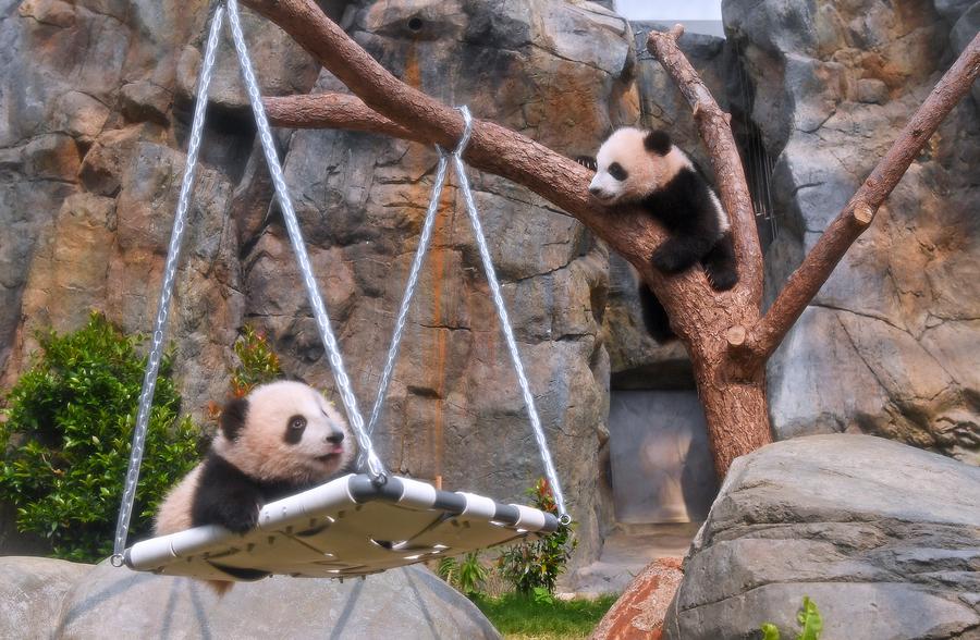 BEIJING, 16 février (Xinhua) -- Les premiers pandas géants nés dans la Région administrative spéciale de Hong Kong (RASHK) seront présentés au public à l'Ocean Park de Hong Kong dimanche. Ces jumeaux, un mâle et une femelle nés en août dernier, sont les bébés de Ying Ying et Le Le, les pandas géants offerts par le gouvernement central à la RASHK.