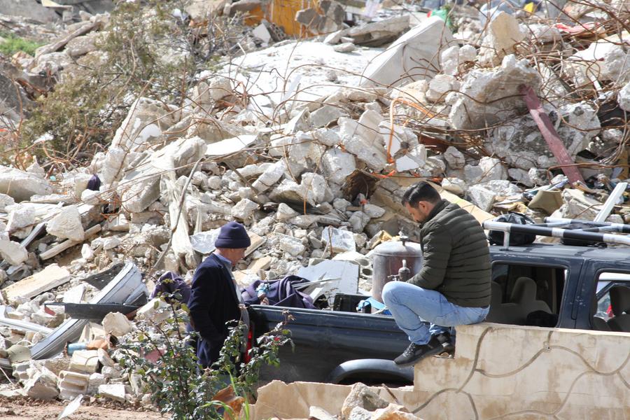 MAYS AL-JABAL (Liban), 22 février (Xinhua) -- Une femme passe un appel parmi les décombres de bâtiments à Mays al-Jabal, au Liban, le 21 février 2025. Des habitants sont rentrés suite au retrait israélien le 18 février. (Xinhua/Taher Abu Hamdan)Photo prise le 21 février 2025 montrant des gens parmi les décombres de bâtiments à Mays al-Jabal, au Liban. (Xinhua/Taher Abu Hamdan)Un homme inspecte une maison détruite à Mays al-Jabal, au Liban, le 21 février 2025. (Xinhua/Taher Abu Hamdan)