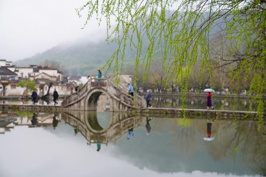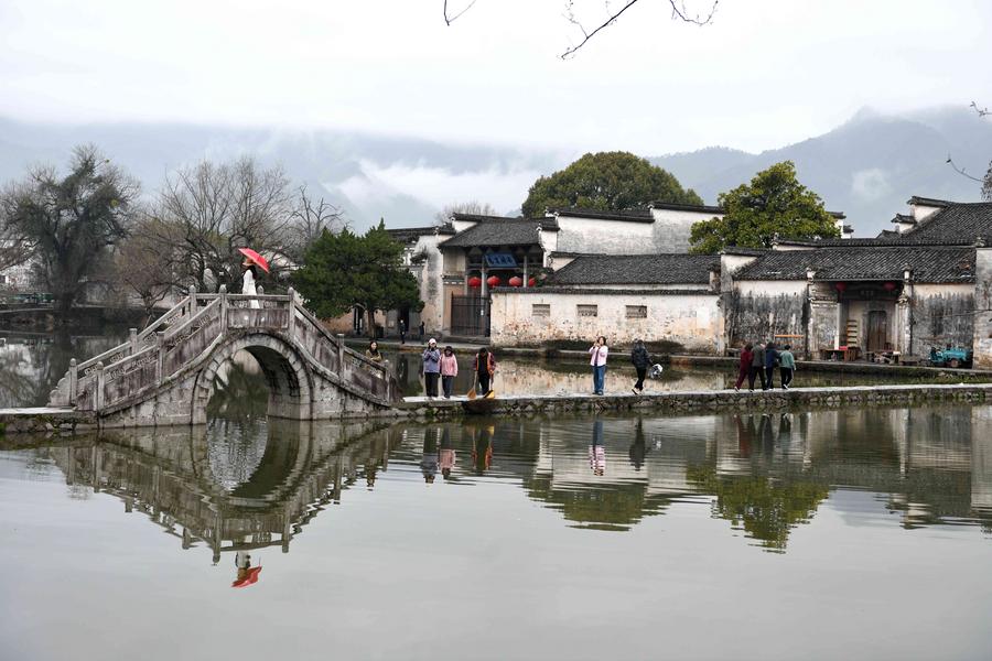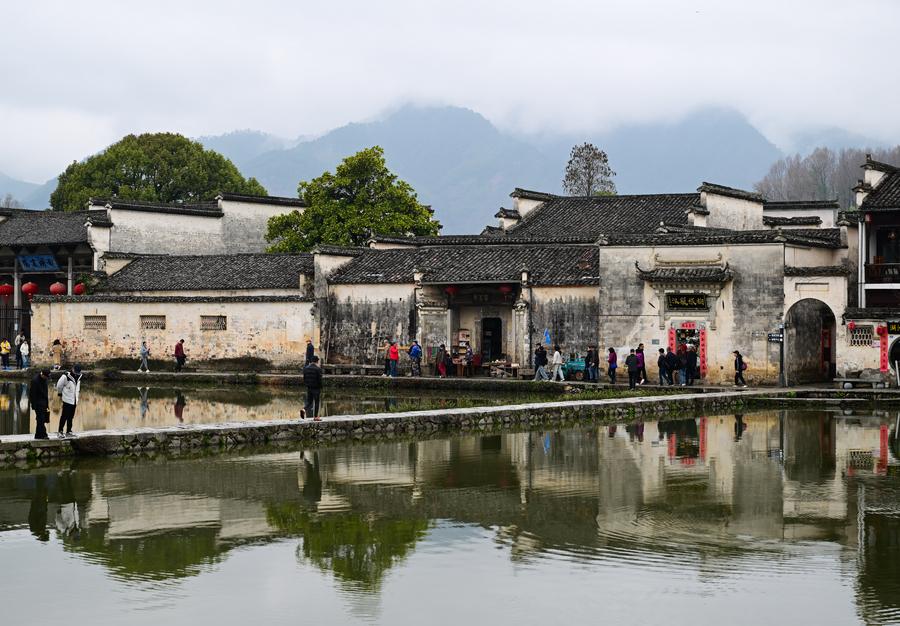 Des touristes prennent du bon temps dans le village de Hongcun, dans le bourg de Hongcun du district de Yixian, dans la ville de Huangshan de la province chinoise de l'Anhui (est), le 14 mars 2025. (Photo : Zhou Mu)