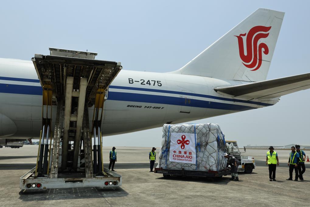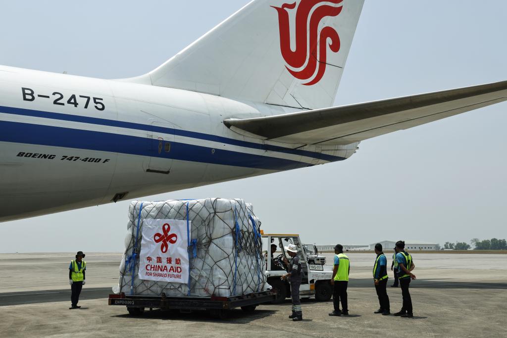 YANGON, 31 mars (Xinhua) -- Le premier lot fourni par le gouvernement chinois de matériel d'aide aux sinistrés du séisme de la semaine dernière est arrivé lundi au Myanmar.
