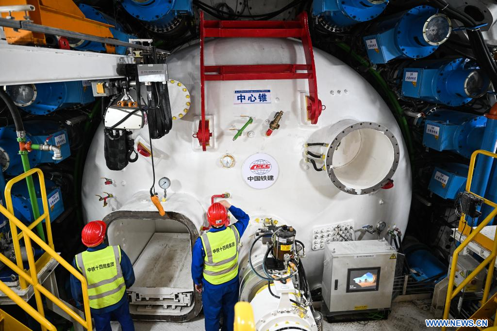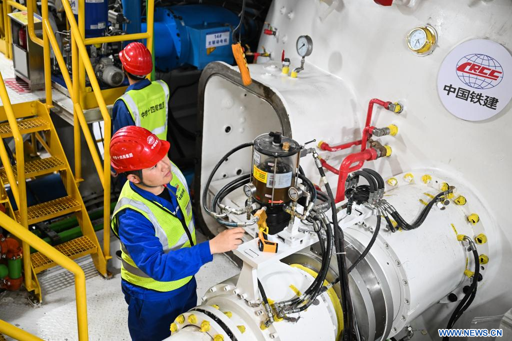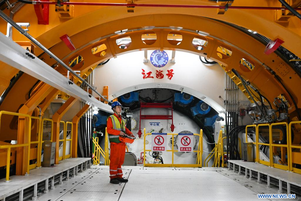 NANJING, 9 avril (Xinhua) -- La Chine a déployé mercredi un tunnelier géant de fabrication nationale pour la construction du plus long tunnel autoroutier sous-marin au monde réalisé à l'aide d'un tunnelier.