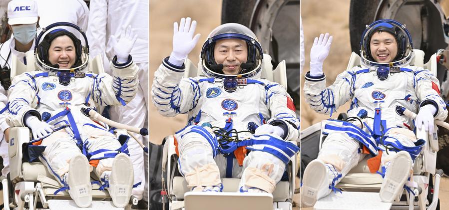 BEIJING, 30 avril (Xinhua) -- L'équipage de Shenzhou-19 est arrivé mercredi à Beijing par avion après avoir achevé leur mission de six mois dans la station spatiale. ■