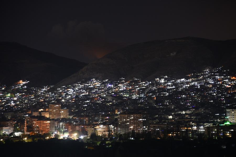 DAMAS, 3 mai (Xinhua) -- De la fumée s'élève du mont Qassioun après une frappe aérienne israélienne à Damas, en Syrie, le 3 mai 2025. L'opération aérienne israélienne s'est intensifiée vendredi à travers la Syrie, avec des frappes d'avions de guerre signalées dans la capitale, Damas, et dans les provinces du centre et de l'ouest, ainsi que des activités de drone observées dans plusieurs régions, selon des médias syriens et un groupe de surveillance. (Xinhua/Monsef Memari)