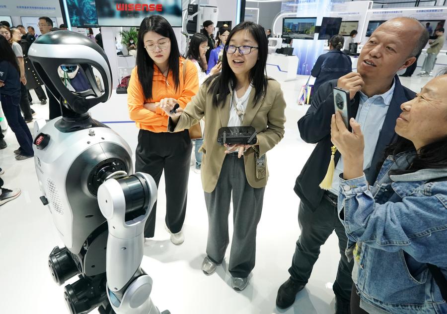 Des robots saluent le public lors de la 27e Exposition internationale de haute technologie de Beijing, capitale chinoise, le 8 mai 2025. (Photo : Ren Chao)Une exposante présente un robot humanoïde lors de la 27e Exposition internationale de haute technologie de Beijing, capitale chinoise, le 8 mai 2025. (Photo : Zhang Chenlin)Des visiteurs essaient un simulateur de conduite du train à grande vitesse Fuxing lors de la 27e Exposition internationale de haute technologie de Beijing, capitale chinoise, le 8 mai 2025. (Photo : Zhang Chenlin)Des robots industriels présentés lors de la 27e Exposition internationale de haute technologie de Beijing, à Beijing, capitale chinoise, le 8 mai 2025.(Photo : Zhang Chenlin)Un robot intelligent de chirurgie orthopédique lors de la 27e Exposition internationale de haute technologie de Beijing, capitale chinoise, le 8 mai 2025. (Photo : Li Xin)■