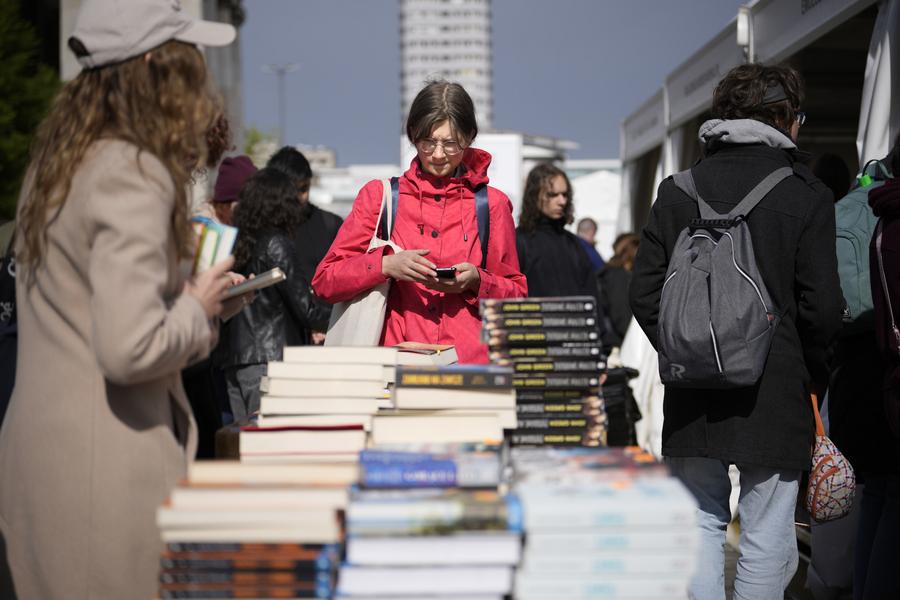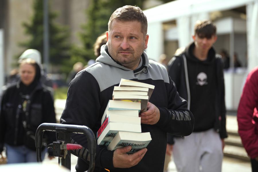 VARSOVIE, 16 mai (Xinhua) -- Un acheteur de livres à la Foire internationale du livre de Varsovie 2025 à Varsovie, en Pologne, le 15 mai 2025. Cet événement, qui se déroule du 15 au 18 mai, réunit plus de 620éditeurs de 20 pays et régions. (Xinhua/Jaap Arriens)