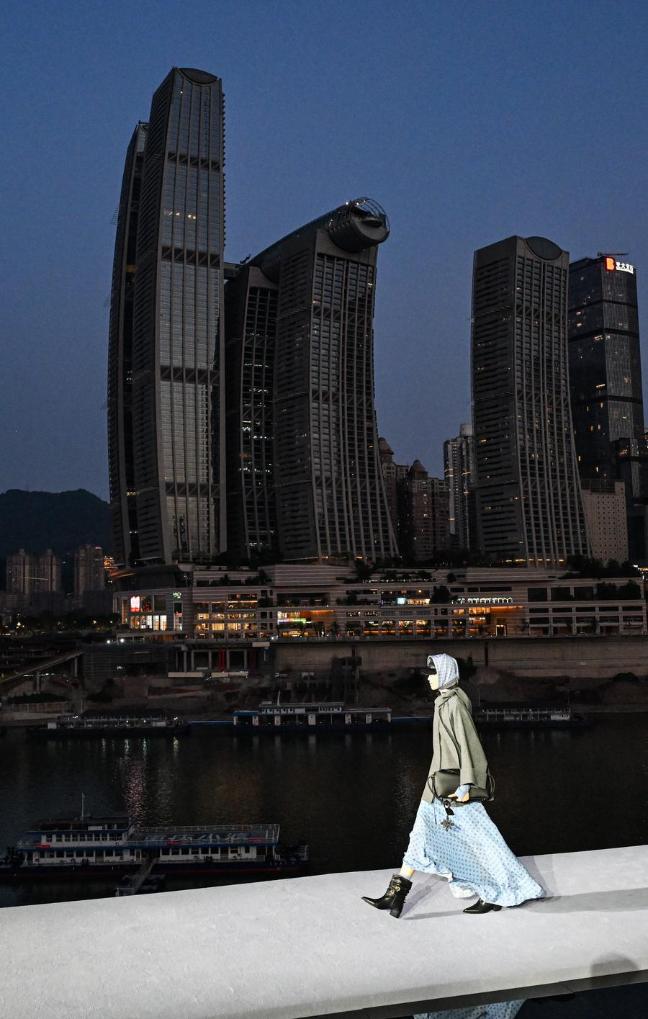 Un mannequin présente une création de la collection hiver XUEGE 2025 lors d'un défilé en plein air, à Chongqing, dans le sud-ouest de la Chine, le 19 mai 2025. (Photo : Wang Quanchao)