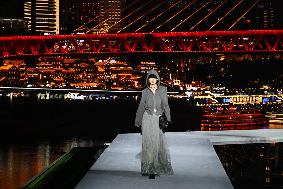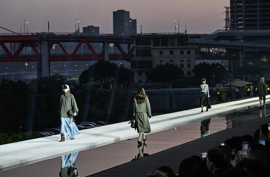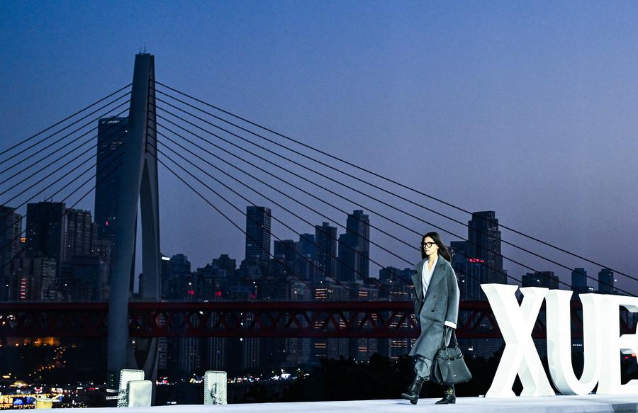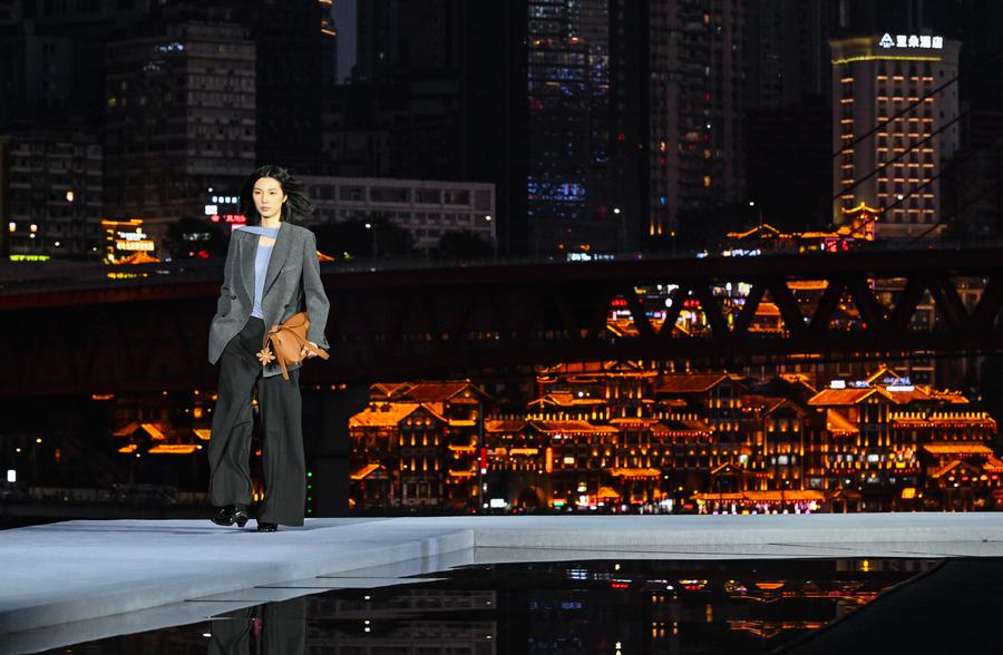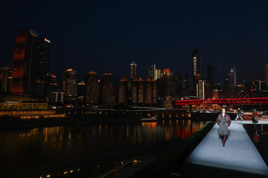 CHONGQING, 20 mai (Xinhua) -- Un défilé de mode organisé en plein air à Chongqing, avec pour toile de fond les lumières de la métropole, a offert au public une fusion unique entre créativité vestimentaire et glamour urbain.