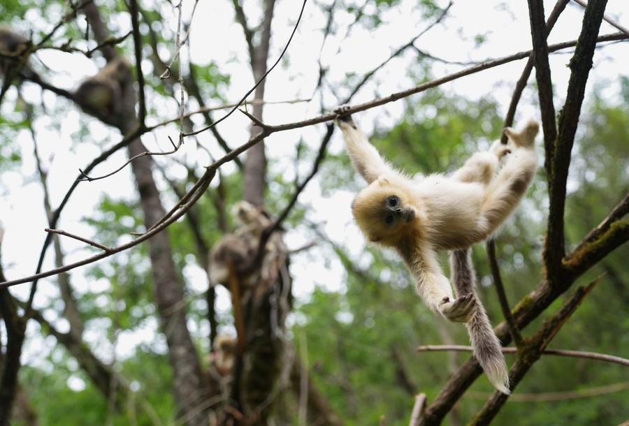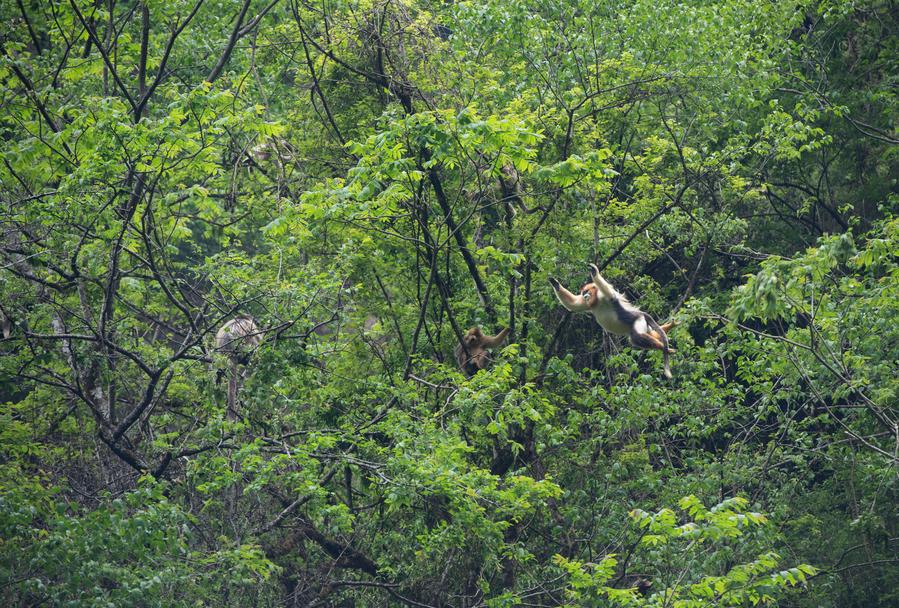 PINGWU, 23 mai (Xinhua) -- Situé au sein de la réserve naturelle de Xiaohegou dans la province chinoise du Sichuan (sud-ouest), le centre de vulgarisation scientifique dédié au rhinopithèque de Roxellane de Pingwu héberge plus de 40 spécimens de cette espèce. Selon les dernières données de suivi datant de 2024, la réserve naturelle de Xiaohegou abrite une population d'environ 1.000 individus de cette espèce.