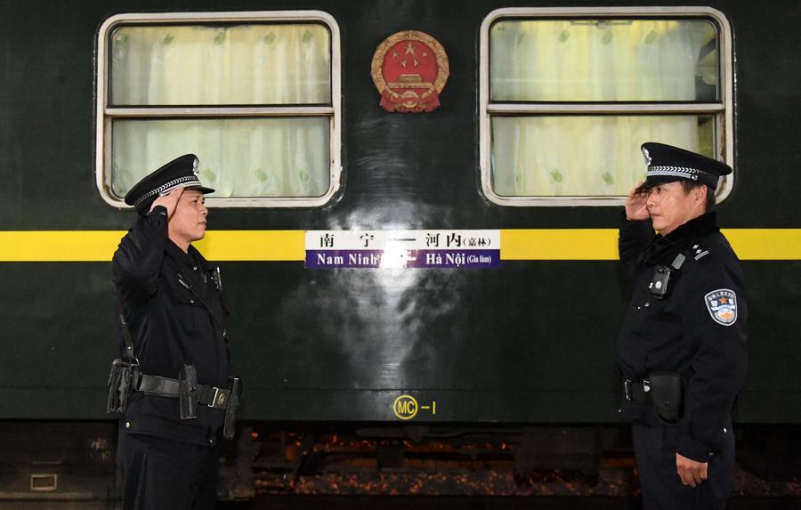 NANNING, 27 mai (Xinhua) -- Le train T8701 a quitté Nanning le 25 mai à 18H05 en direction de Hanoi, au Vietnam, marquant ainsi la reprise du service ferroviaire international de passagers entre la Chine et le Vietnam après cinq années d'interruption.