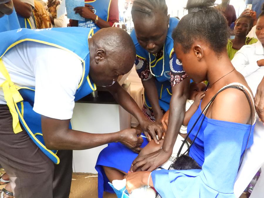 JUBA, 28 mai (Xinhua) -- Un professionnel de santé sud-soudanais (à gauche) vaccine un enfant lors du lancement d'une campagne de vaccination à Juba, la capitale du Soudan du Sud, le 27 mai 2025. Le Soudan du Sud, en partenariat avec des agences des Nations Unies, a lancé mardi deux vaccins destinés à prévenir la pneumonie et la diarrhée sévère chez les enfants de moins de cinq ans. (Xinhua/Denis Elamu)Une professionnelle de santé sud-soudanaise (à droite) vaccine un enfant lors du lancement d'une campagne de vaccination à Juba, la capitale du Soudan du Sud, le 27 mai 2025. (Xinhua/Denis Elamu)