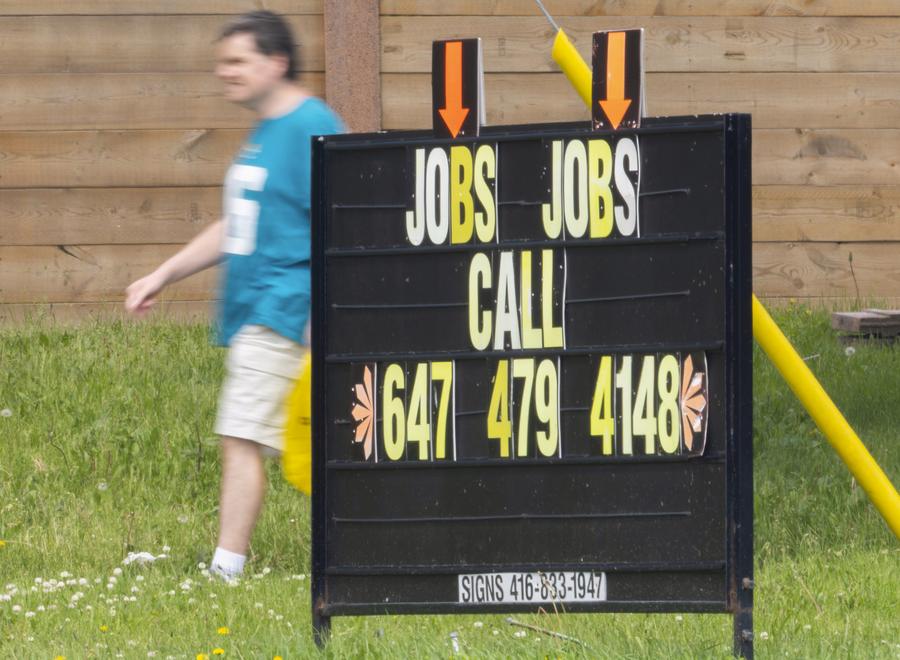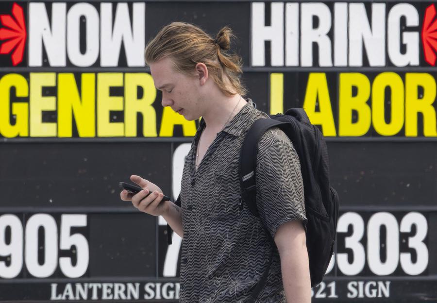 TORONTO, 7 juin (Xinhua) -- Un homme passe devant un tableau d'affichage d'offres d'emploi à Toronto, au Canada, le 6 juin 2025. Le taux de chômage au Canada a augmenté de 0,1 point de pourcentage pour atteindre 7,0% en mai, a annoncé vendredi Statistique Canada. (Xinhua/Zou Zheng)