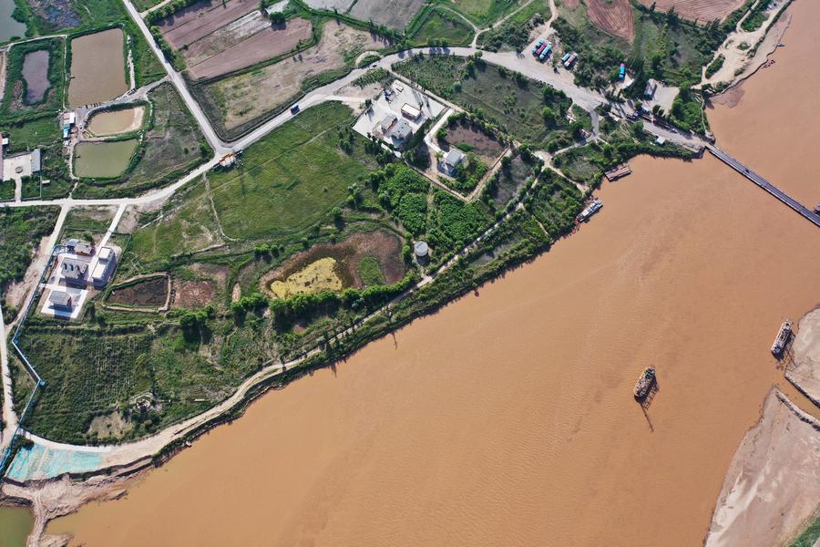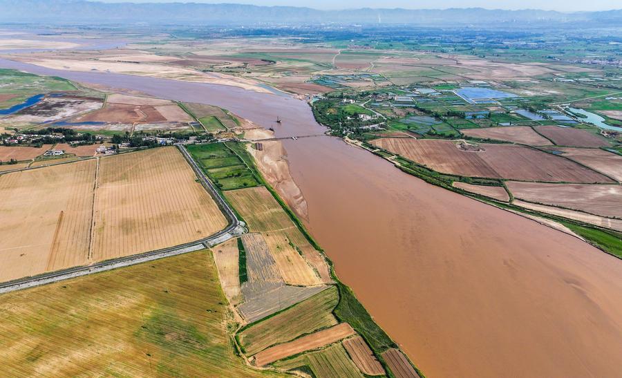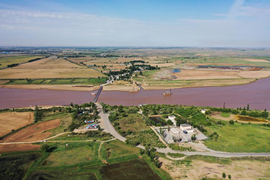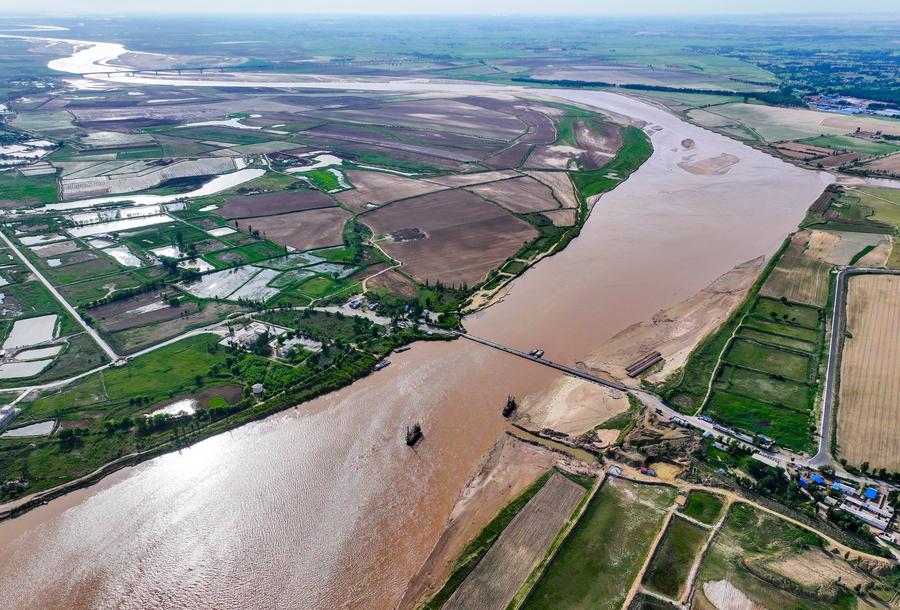ERDOS, 8 juin (Xinhua) -- Paysage du fleuve Jaune dans la bannière de Dalad, située dans la région autonome de Mongolie intérieure (nord de la Chine), le 7 juin 2025.
