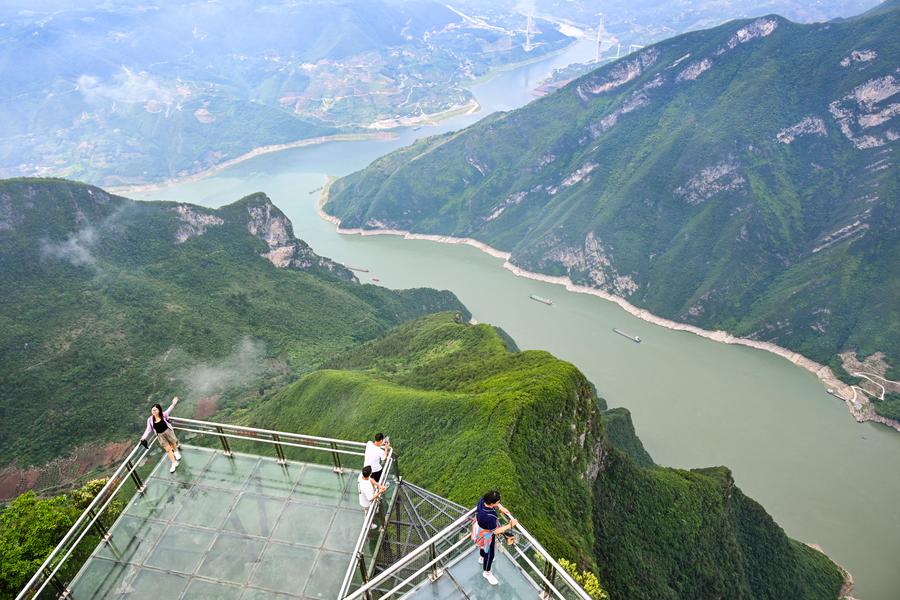 Des touristes visitent la gorge de Qutang, l'une des Trois gorges sur le fleuve Yangtsé, dans le district de Fengjie de la municipalité de Chongqing (sud-ouest de la Chine), le 9 juin 2025. (Photo : Wang Quanchao)