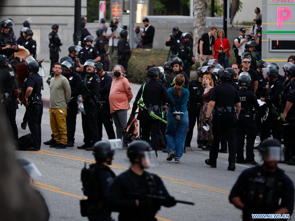 LOS ANGELES, 11 juin (Xinhua) -- Près de 400 personnes ayant participé à des manifestations contre la politique d'immigration ont été arrêtées ou détenues par la police de Los Angeles depuis samedi, ont rapporté les médias.