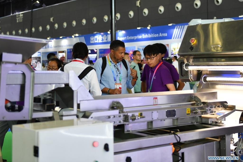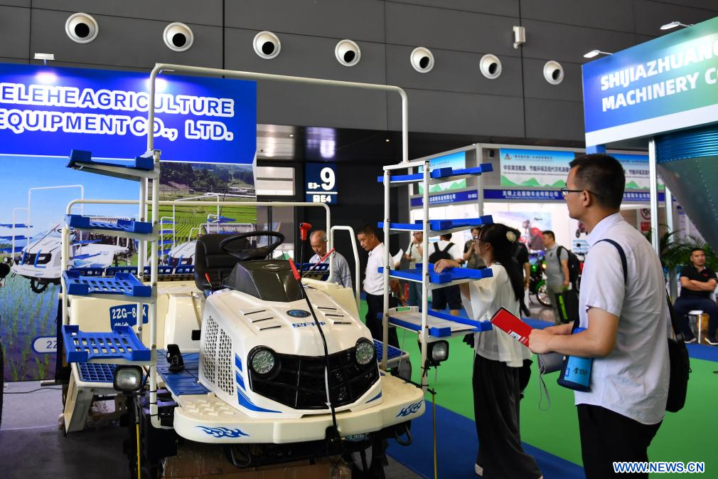 CHANGSHA, 15 juin (Xinhua) -- Un visiteur se renseigne sur des machines agricoles lors de la 4e Exposition économique et commerciale Chine-Afrique, au Centre international des expositions et des congrès de Changsha, à Changsha, dans la province chinoise du Hunan (centre), le 14 juin 2025. Des fabricants chinois de machines agricoles participant à l'exposition ont adapté certains de leurs produits à la topographie, au climat et à l'environnement agricole des pays africains, afin de proposer une série de solutions adaptées aux besoins critiques des agriculteurs du continent. (Photo : Chen Zhenhai)