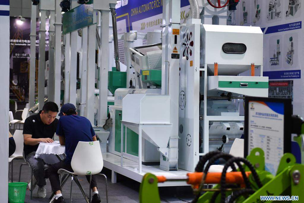CHANGSHA, 15 juin (Xinhua) -- Un visiteur devant des machines agricoles lors de la 4e Exposition économique et commerciale Chine-Afrique, au Centre international des expositions et des congrès de Changsha, à Changsha, dans la province chinoise du Hunan (centre), le 14 juin 2025. Des fabricants chinois de machines agricoles participant à l'exposition ont adapté certains de leurs produits à la topographie, au climat et à l'environnement agricole des pays africains, afin de proposer une série de solutions adaptées aux besoins critiques des agriculteurs du continent. (Photo : Chen Zhenhai)