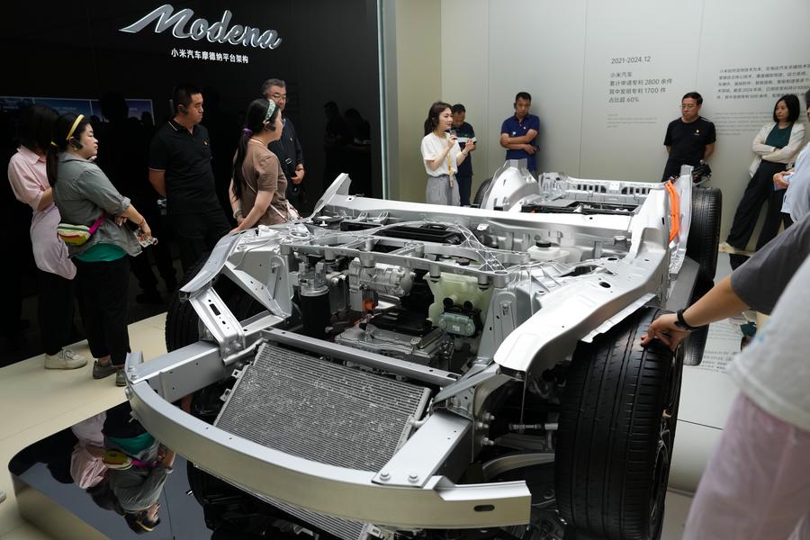 BEIJING, 18 juin (Xinhua) -- Située dans la Zone de développement économique et technologique de Beijing, l'usine automobile du géant technologique chinois Xiaomi s'étend sur plus de 700.000 mètres carrés. Regroupant la recherche, les essais, la production et les ventes, l'usine est ouverte au public pour présenter ses capacités de production automobile de pointe.