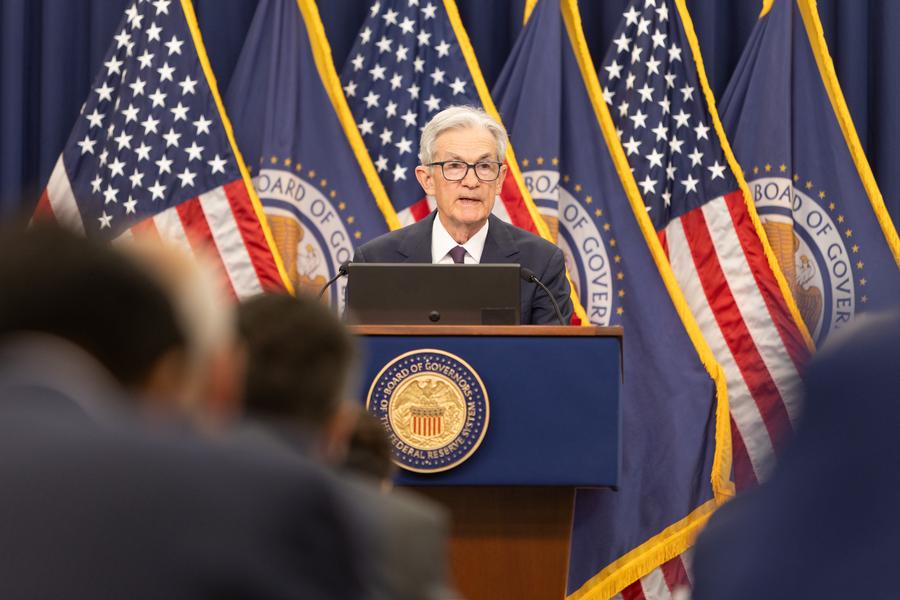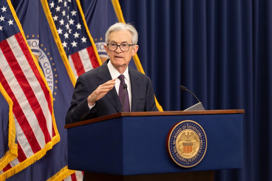 WASHINGTON, 19 juin (Xinhua) -- Le président de la Réserve fédérale américaine (Fed), Jerome Powell, participe à une conférence de presse à Washington, aux Etats-Unis, le 18 juin 2025. La Fed a laissé mercredi ses taux d'intérêt directeurs fédéraux inchangés dans une fourchette comprise entre 4,25% et 4,5%, alors que la solide expansion de l'activité économique favorise l'attentisme. (Xinhua/Hu Yousong)