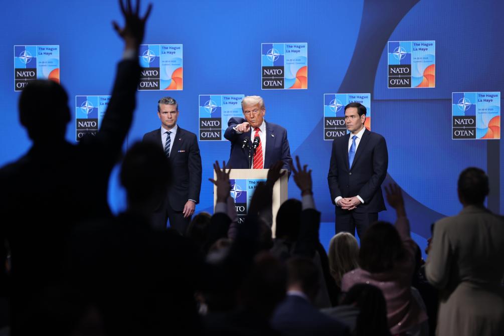 LA HAYE, 25 juin (Xinhua) -- Le président américain Donald Trump (au premier plan) participe à une conférence de presse à l'issue du sommet de l'OTAN à La Haye, aux Pays-Bas, le 25 juin 2025. Il a déclaré mercredi que les Etats-Unis tiendraient des pourparlers avec l'Iran la semaine prochaine. (Xinhua/Zhao Dingzhe)Le président américain Donald Trump participe à une conférence de presse à l'issue du sommet de l'OTAN à La Haye, aux Pays-Bas, le 25 juin 2025. Il a déclaré mercredi que les Etats-Unis tiendraient des pourparlers avec l'Iran la semaine prochaine. (Xinhua/Zhao Dingzhe)Le président américain Donald Trump (centre) participe à une conférence de presse à l'issue du sommet de l'OTAN à La Haye, aux Pays-Bas, le 25 juin 2025. Il a déclaré mercredi que les Etats-Unis tiendraient des pourparlers avec l'Iran la semaine prochaine. (Xinhua/Zhao Dingzhe)Le président américain Donald Trump participe à une conférence de presse à l'issue du sommet de l'OTAN à La Haye, aux Pays-Bas, le 25 juin 2025. Il a déclaré mercredi que les Etats-Unis tiendraient des pourparlers avec l'Iran la semaine prochaine. (Xinhua/Zhao Dingzhe)
