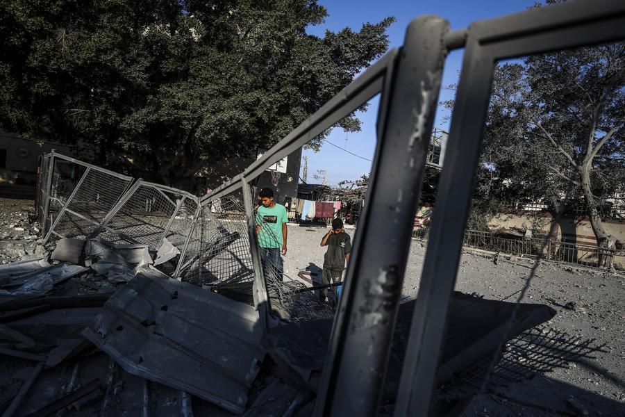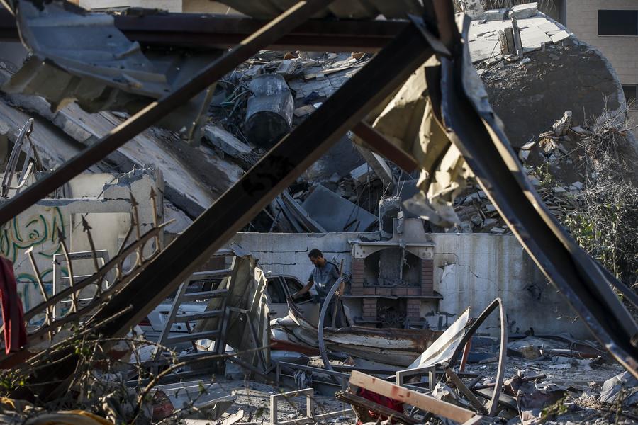 Des Palestiniens inspectent des débris suite à une attaque aérienne israélienne dans la ville de Gaza, le 26 juin 2025. (Xinhua/Mahmoud Zaki)